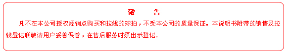 本公司对球拍被私自改造或修理后所发生的事故不负责任。